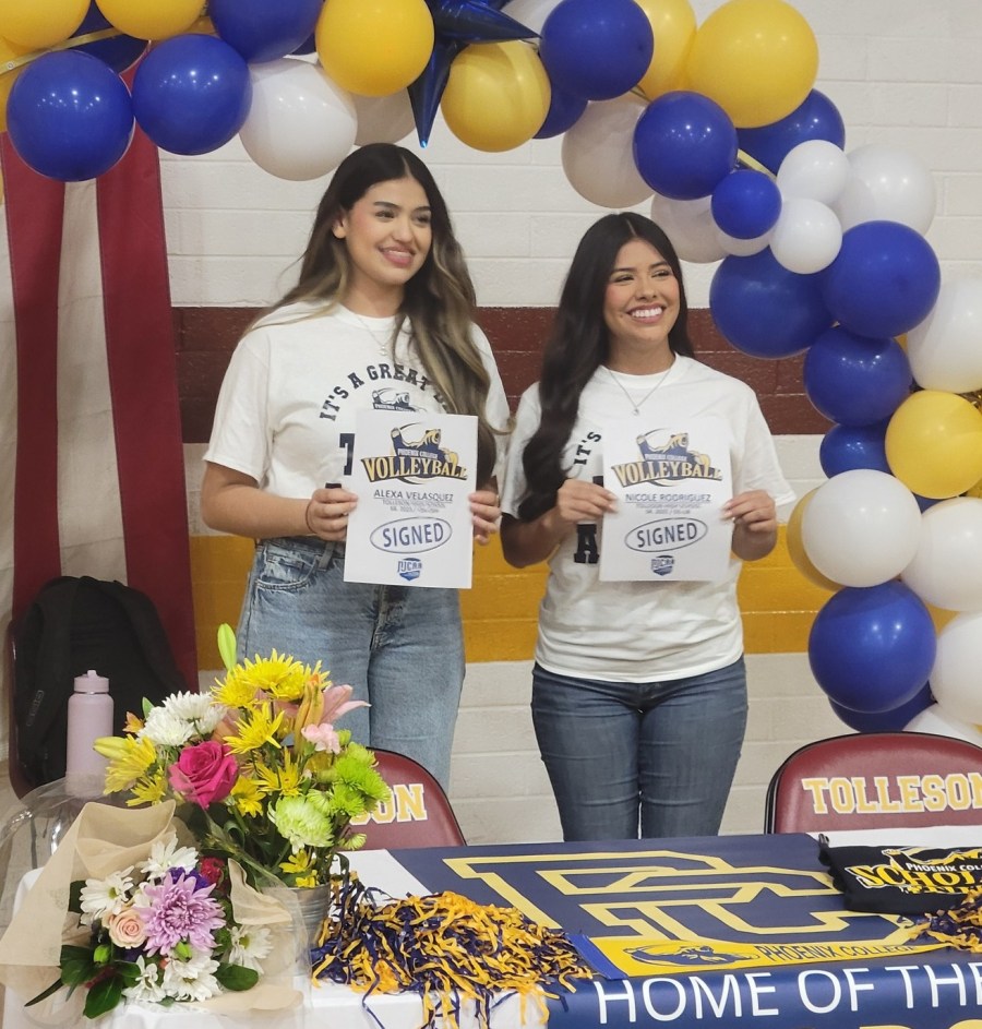 Saguaros 18-1s Nicole and Alexa featured on the right both were recruited by Phoenix College for the 2025-2026 season.